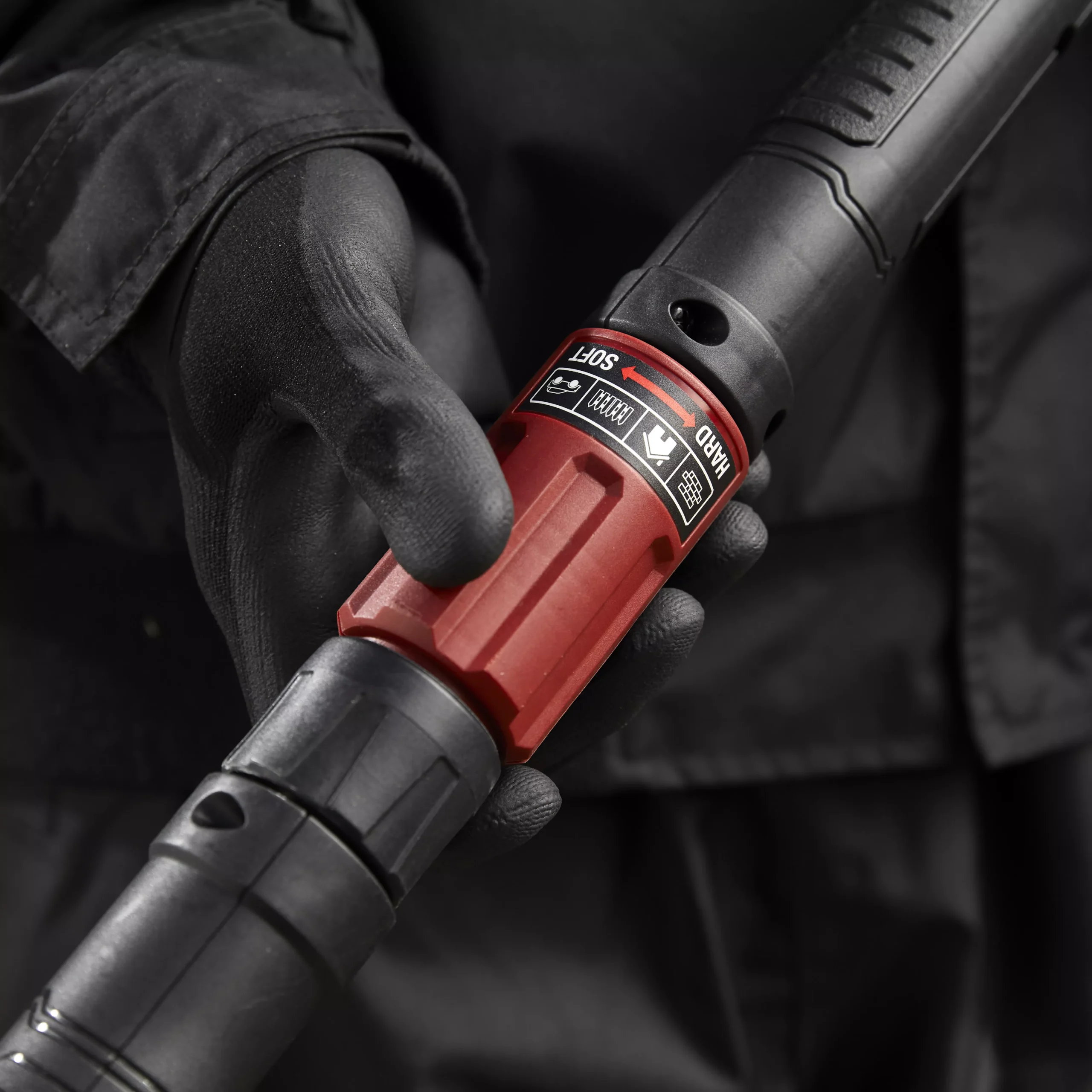 - Variable water pressure adjustment operated via the gun