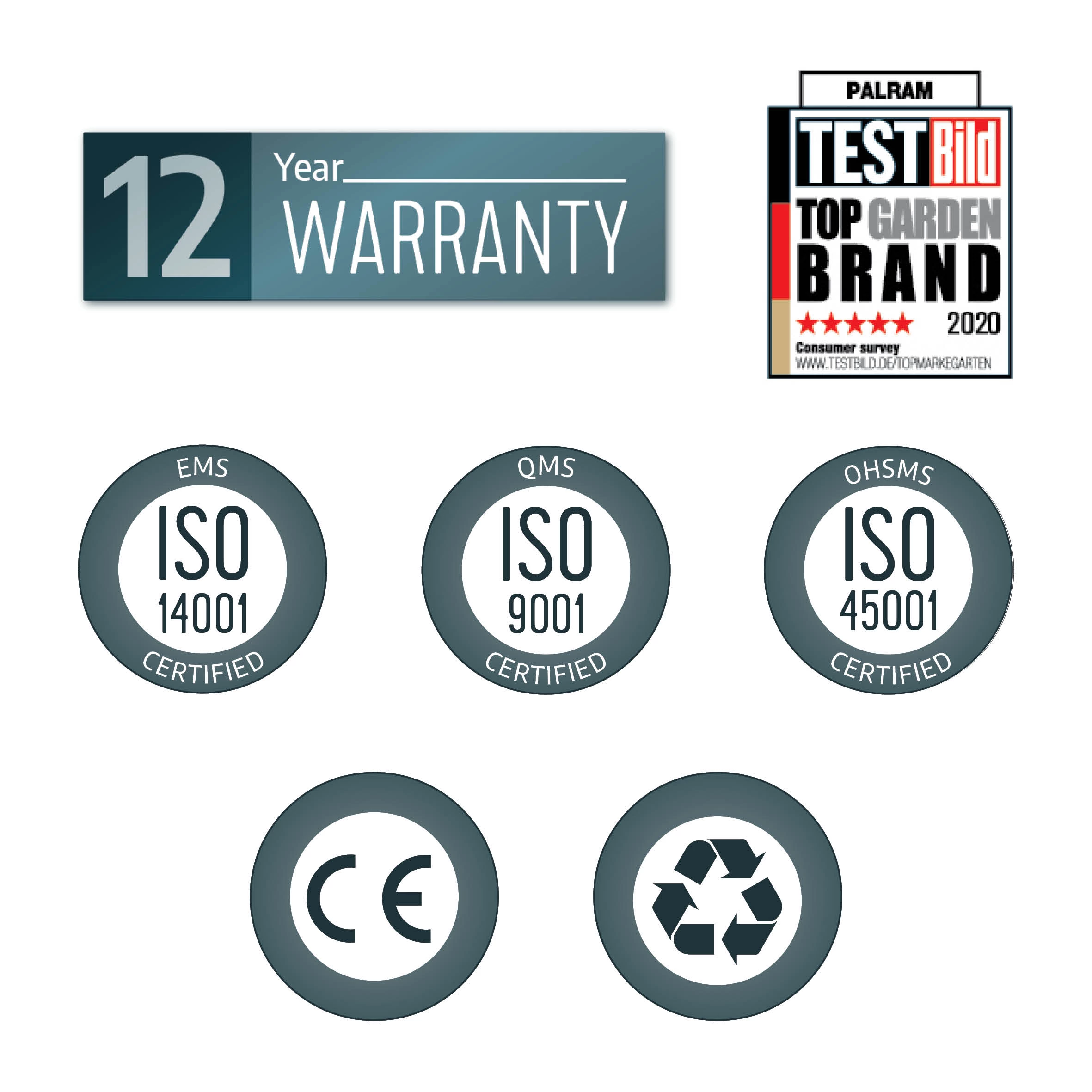 - Robust structure – reinforced design with durable, corrosion resistant powder coated white aluminium profiles and galvanised steel connectors