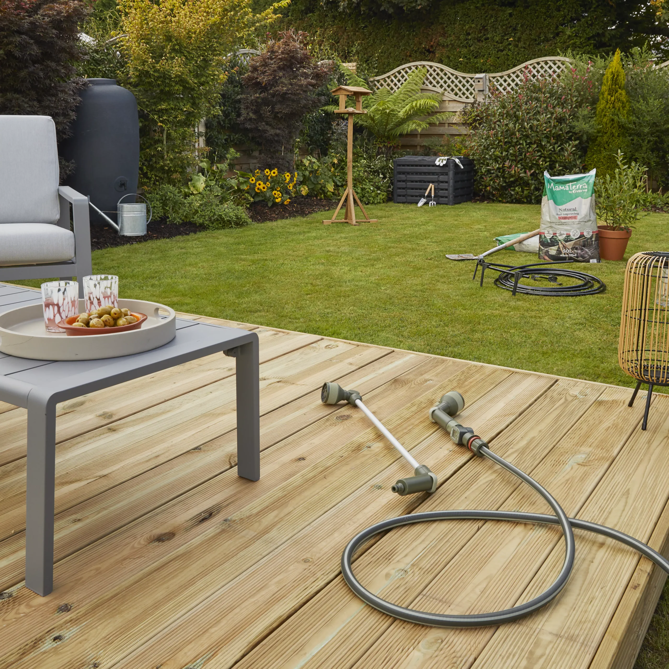 - Do not stand on or run over the hose with heavy objects. The tube will be more manageable if immersed in warm water prior to use. Please retain instructions for future reference. Scissors are not included. This product can be split into several irrigation lines, refer to the ” example set up ” shown in instruction manual and assemble according to your watering requirements. • It is possible to connect this product directly to the tap or onto a 1/2″ garden hose through a standard hose end connector. Please see the diagram below. (This product does not contain hose end connectors)
